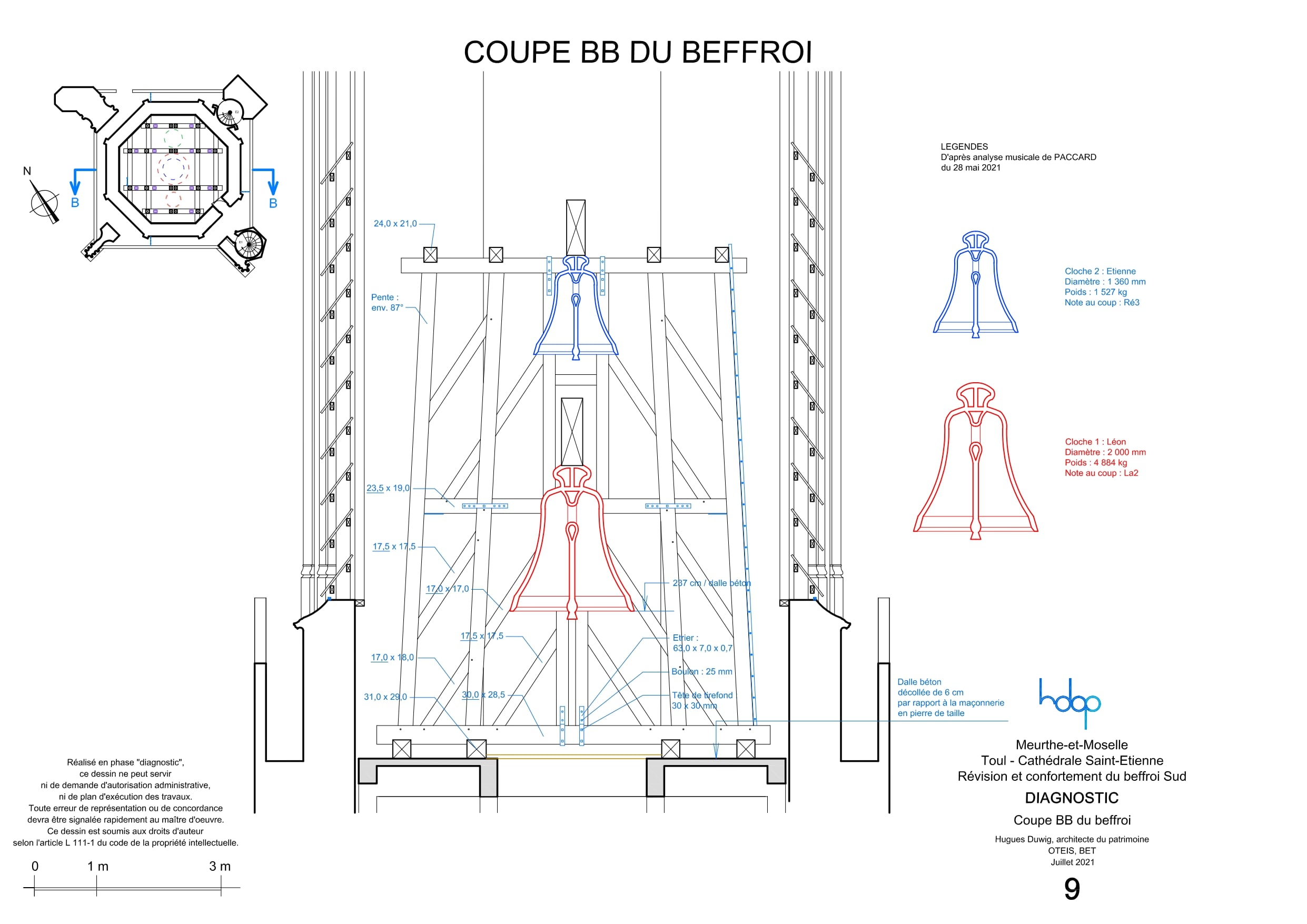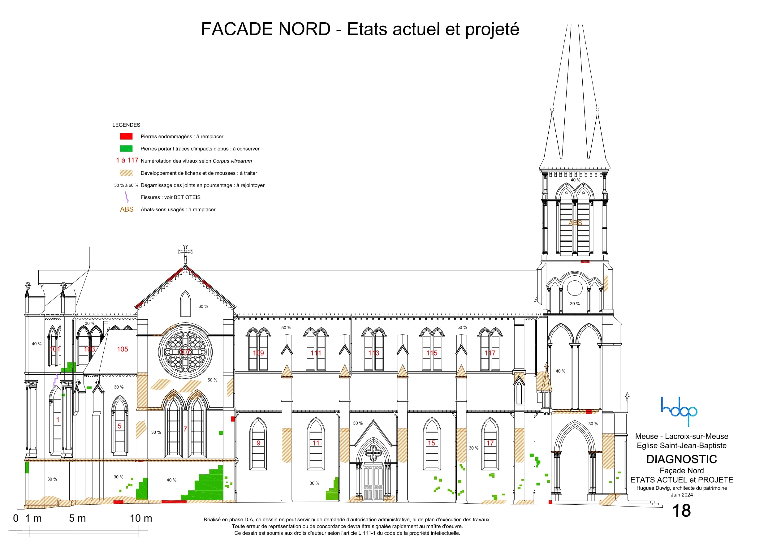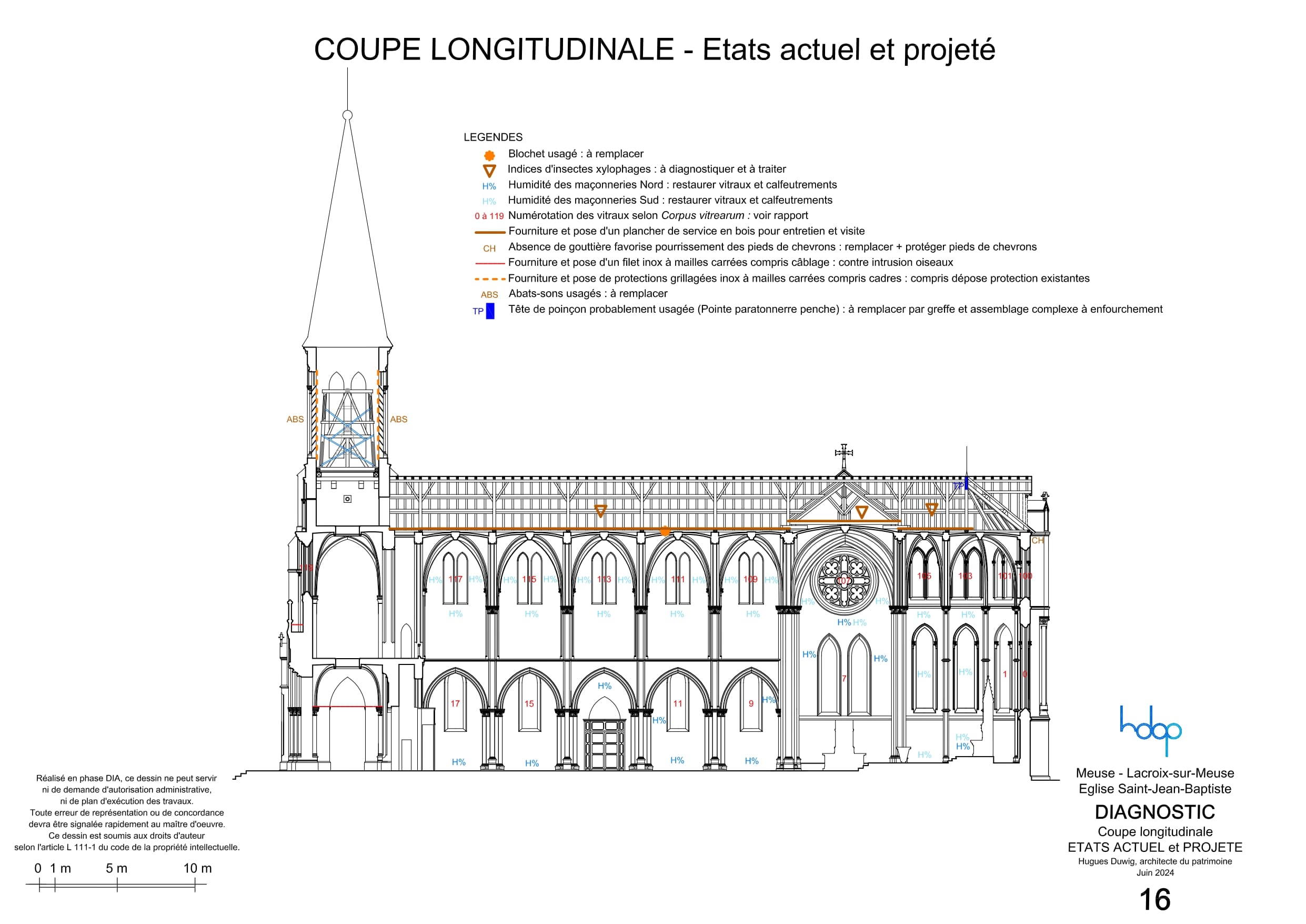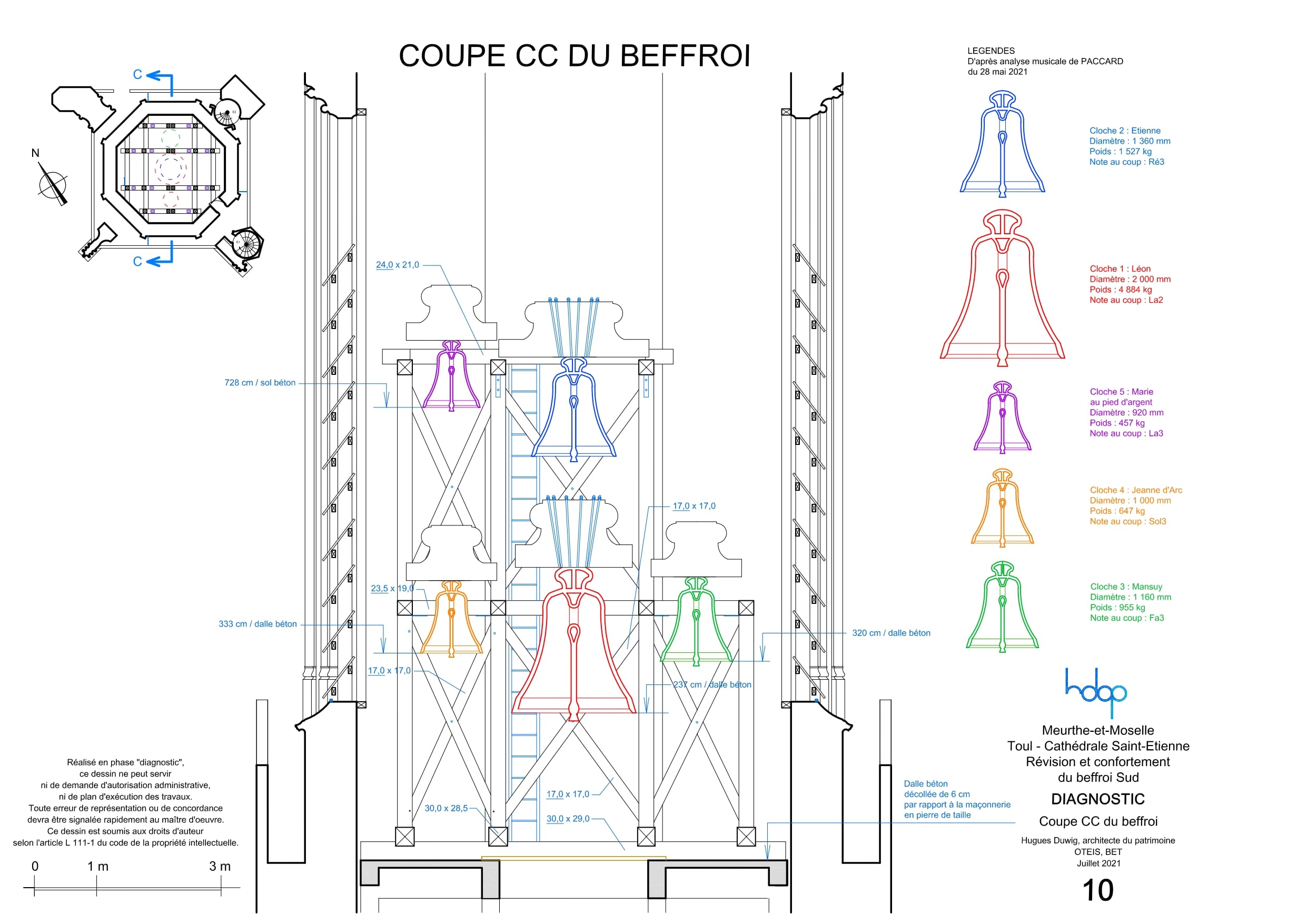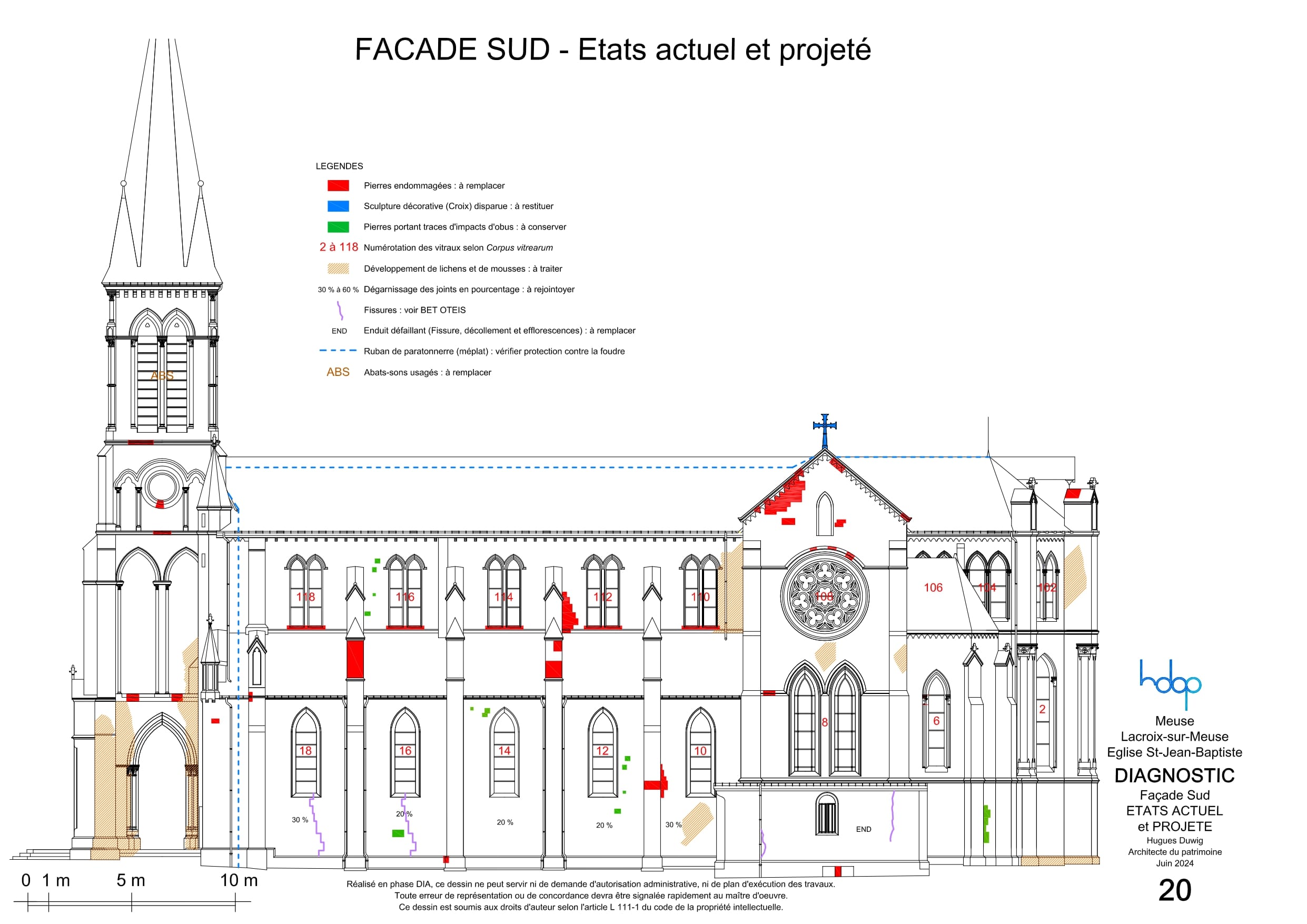 Le diagnostic a pour objet de dresser un bilan de santé du monument. Il comprend les relevés, les études historiques, l’état sanitaire et les premières propositions de travaux. Des tranches de travaux sont proposées en fonction des urgences.